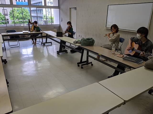 場所は青葉区中央市民センターで、窓を開けて常に換気を十分にし、ソーシャルディスタンスに気を付けるなど感染防止策をとって練習しました。