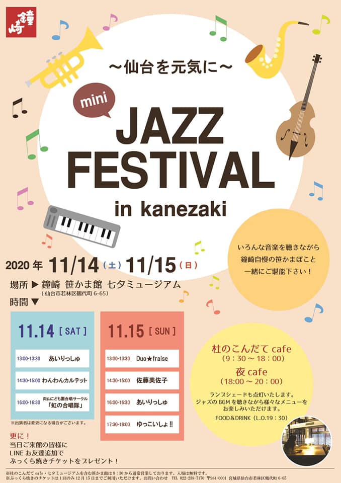 来週,仙台のかまぼこの鐘崎でmini JAZFESTIVALというイベントが開催され,あいりっしゅが出演することになりました!!